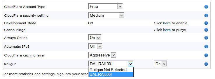 We’re happy to announce we’re now offering CloudFlare’s wonderful Railgun™ service to every user for free (shared web hosting only). You’ll simply need to go to the “CloudFlare” option within your control panel and enable it (more on that in a moment).