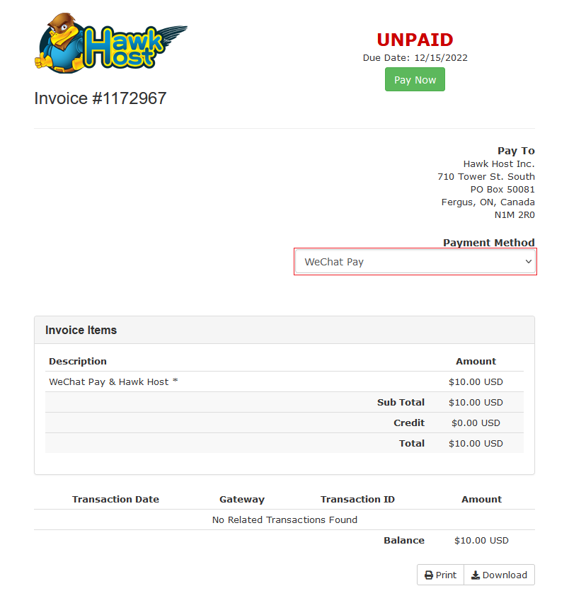 We are very happy to announce WeChat Pay as our newest accepted payment method! Available now to all customers, WeChat Pay is one of the most popular mobile apps in China and presents an easy to use payment option for your invoices with Hawk Host!