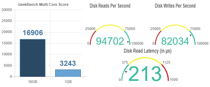 Our computes are powered by the latest generation Intel Xeon processors with our software defined redundant storage system capable of speeds exceeding SSD’s. Our infrastructure uses StorPools distributed architecture to ensure not only the best performance but also redundant storage to ensure your data is always safe. In a previous blog post we covered a more in depth breakdown of each aspect of the computes and their performance. For a quick glance at the compute performance check out the metrics below: