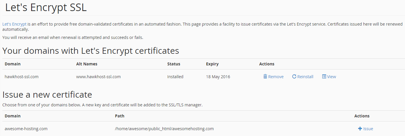 First off, these SSL certificates can be installed on any shared, reseller, or semi-dedicated hosting plan.These certificates are completely valid, trusted, and offer the same level of encryption and protection as any other SSL certificate you may purchase from another certificate authority. Of course there are still added benefits to higher-level certs, but for a hobbyist or someone who just wants that extra layer of site protection, Let’s Encrypt is perfect for you. Past that, these certificates expire every three months. However as long as the domain(s) you’ve installed your certs on are still pointed to our servers they’ll be automatically renewed. If you need more information on the differences between a standard SSL certificate and what Let’s Encrypt provides please contact us - we’ll be more than happy to explain everything!