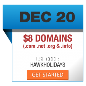 Today’s deal is an $8 Domain Name Registration by using the coupon code HAWKHOLIDAY8!