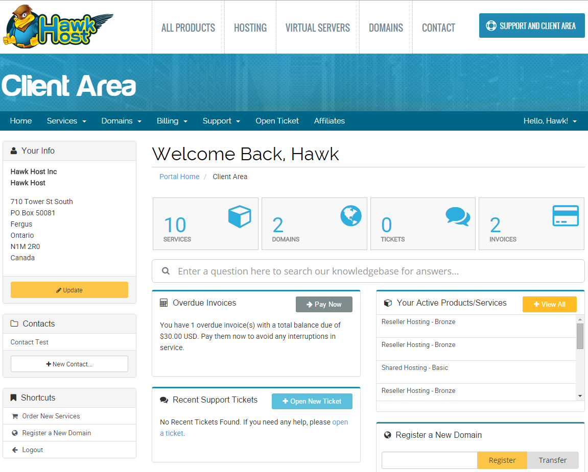 Our client area just got a face lift! The new theme and layout is fully responsive, 100% mobile friendly, cleaner, and easier to navigate. You can now manage your billing, support, cPanel and more from right through the client area!