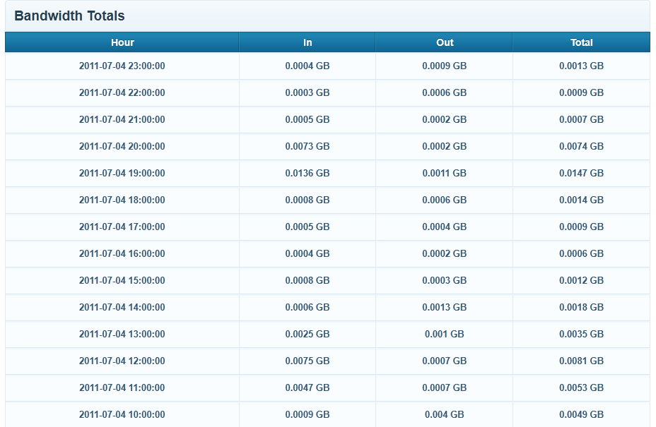 There was one change we knew was necessary and due to how we store bandwidth data we’re able to deliver. It was a constant problem users asking how they used so much bandwidth and the best we could do was daily usage. This was not good enough for us so now our system supports ranges. This means you can see the actual bandwidth usage break down of a day by the hour if you want. Here is an example: