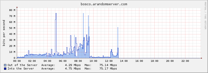 Thankfully we do not pay for bandwidth that does not go out to the Internet so that means we’re not actually being charged any money for this. But even so that is a lot of data going through our backup machine each month. As a result of this we’re looking at other solutions such as R1Soft and Evault as better backup solutions that are really incremental and could allow us to do 5 minute backups if we wanted to. These systems would also generate lower load than our current backup systems do to their integration into the actual operating system opposed to just a rsync or some other fancy but inefficient way of generating backups.