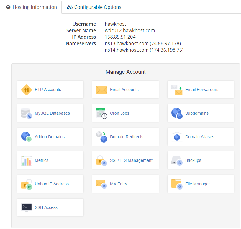 The full cPanel integration allows you to manage your email accounts, addon domains, MySQL databases, and much more right from the client area.